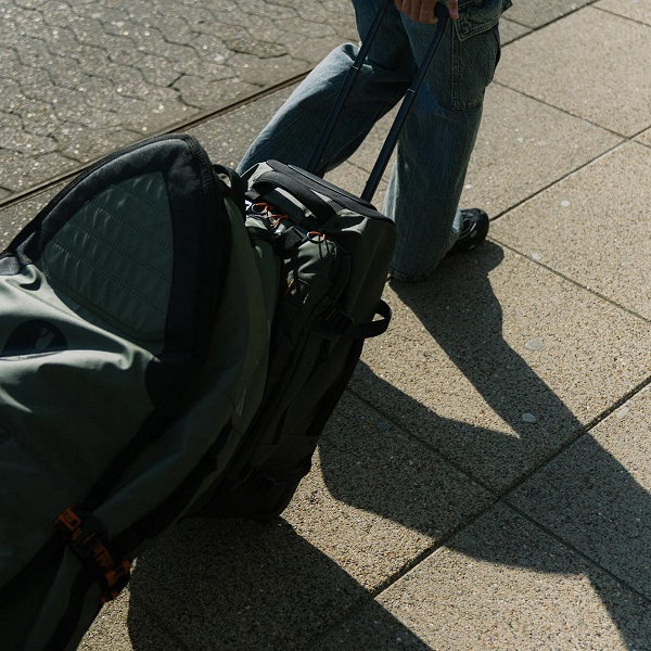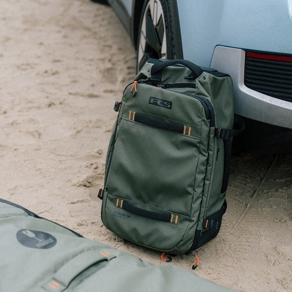 FCS GO-Lightトラベルウィーリーボードカバーを装着すれば、バッグとボードを一体化したユニットとしてトロリー移動が可能です。